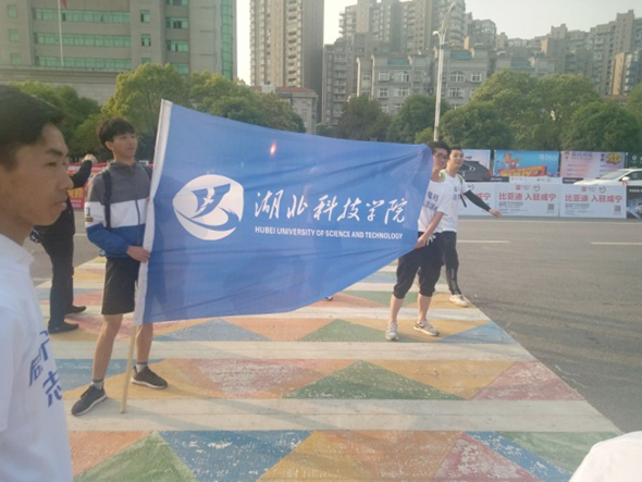 本网讯(通讯员张琪 宁涛) 2017年4月15日早8:00,咸宁市微型马拉松比赛在咸宁市人民广场正式拉开了序幕。我校40名志愿者参加了陪跑和礼仪服务工作。马拉松比赛既是对参赛者的一次挑战,也是对身体素质的磨炼同时也是对意志力的考验。然而这不仅仅是参赛选手的体育盛宴,还是一场志愿者的盛宴。马拉松志愿者在背后默默为运动员们服务,他们是一群可爱可敬的英雄!