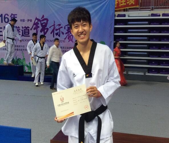 本网讯 6月23日,在“2016年中国大学生跆拳道锦标赛”上,多宝在线开户跆拳道代表队队员——体育学院14级学生鞠卿彦在高手如林、竞争残酷的赛场上,经过激烈角逐,成功闯入半决赛,并最终取得了男子乙组(体育院系组)87KG级第三名的好成绩。