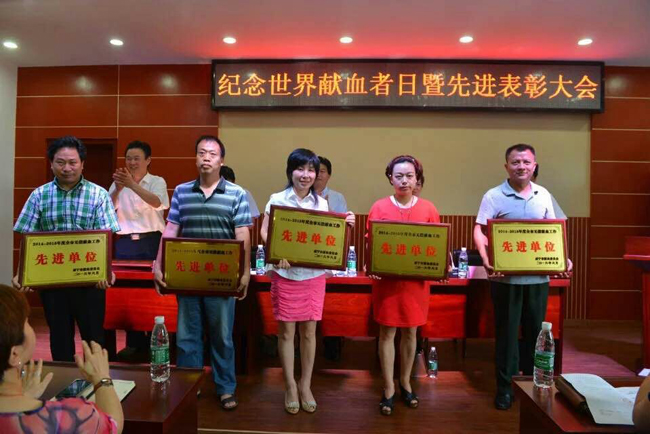 本网讯(通讯员郑珍)6月14日是第十三个世界献血者日,咸宁市献血委员会在咸宁市中心血站会议室隆重召开纪念世界献血者日暨先进表彰大会,市政府秘书长出席大会讲话并为获奖单位几个人颁奖。学校及附属二医院同时获得2014-2015年度全市无偿献血工作先进单位。学校办公室副主任吴玉梅代表学校领奖。教育学院党总支常务副书记刘之杨获得全国无偿献血奉献奖银奖,受邀参加表彰大会。