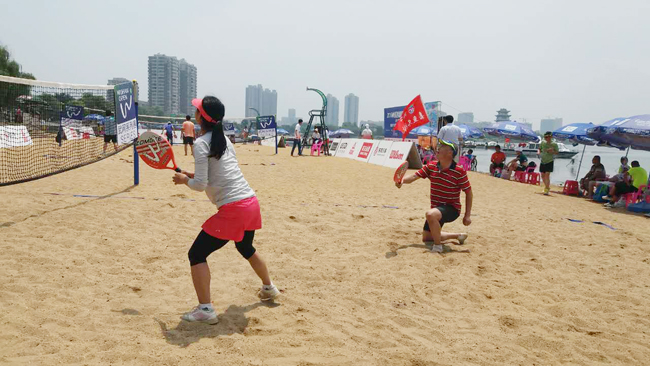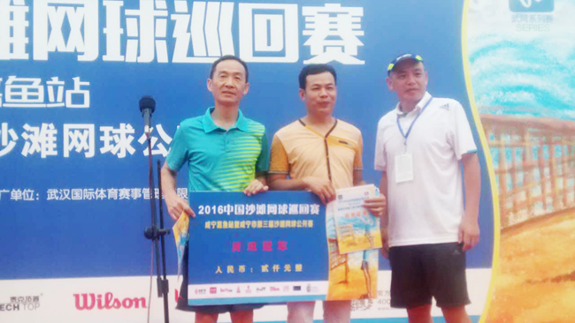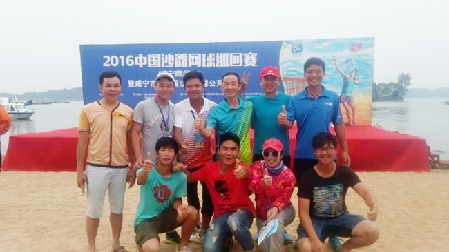 2016年全国沙滩网球巡回赛嘉鱼站比赛于6月10日在风景秀丽的嘉鱼三湖连江沙滩浴场隆重举行。本次比赛由中国网球协会主办,湖北省网球协会和咸宁市体育局承办,是继2014年中国首届沙滩网球赛在武汉成功举办后再次举办的全国沙滩网球赛,共有来自全国各地的96名选手参赛,其中有8名选手来自多宝在线开户体育学院。经过一天的激烈对抗,我校李爱国、梁赞斌老师在半决赛中战胜来自武汉的上届冠军,并与我院学生帅成杰、裴阳清会师。决赛成为了我院师生的表演,比赛中精彩不断,掌声不停,最终老师战胜学生夺得双打冠军,我校另一队选手周嘉龙、宇文骏帆获双打第五名。