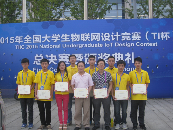 2015年9月24日,从全国950支代表队中选拨出来的121支参赛队伍参加在江苏无锡太湖国际博览中心的总决赛。经过激烈的角逐,我校计算机科学与技术学院钟良骥老师指导,梅杰、尚传文、王爽、王晓东设计制作的“M@Light智能无线照明”获总决赛一等奖,王忠友老师指导,田敏渊、张倩、杨飞、王洵设计制作的“基于Zigbee技术的电能集抄系统”获总决赛二等奖。